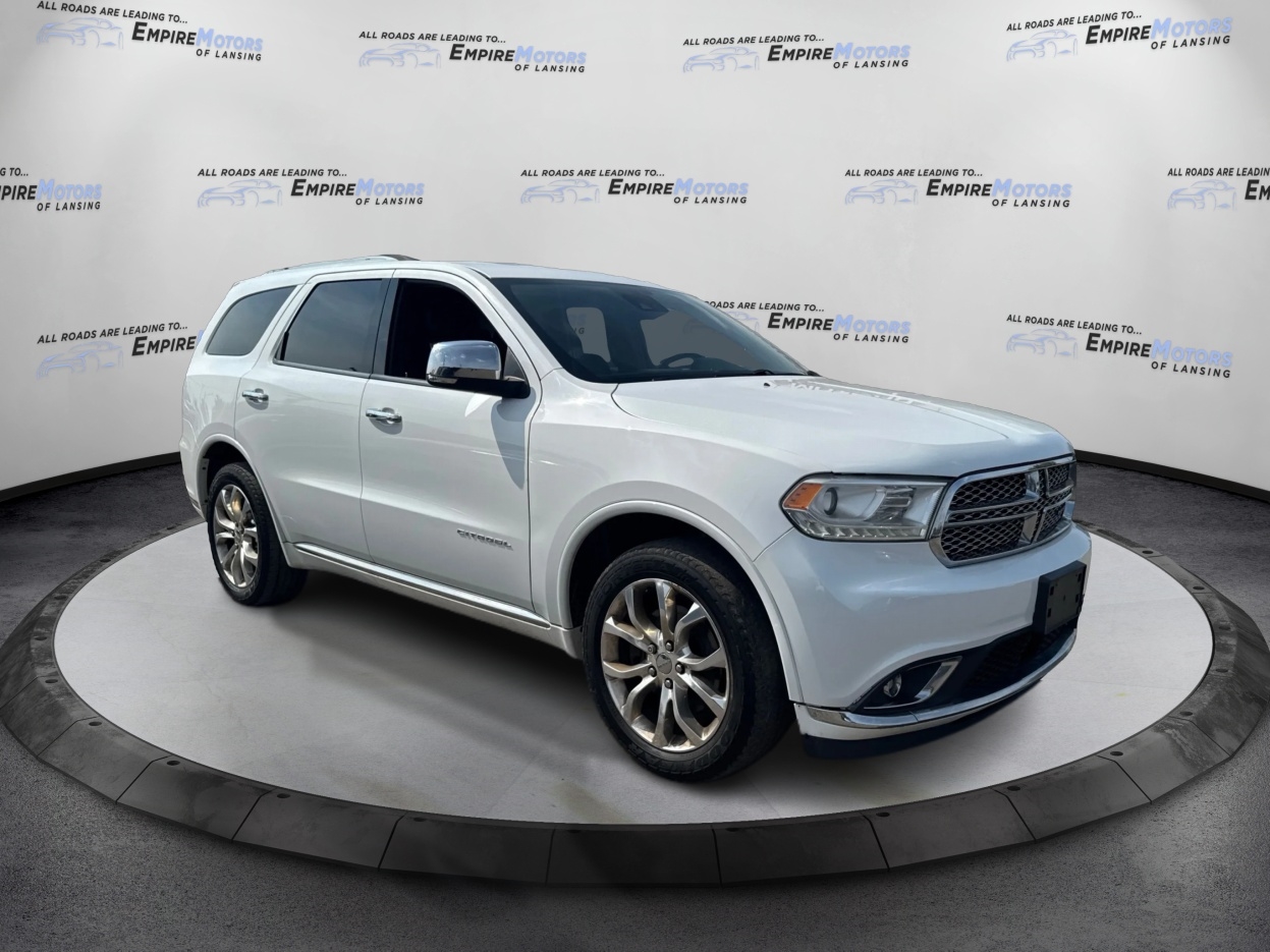 Hop in and take a ride in this sleek and stylish 2016 Dodge Durango! With its powerful engine and smooth handling, you'll feel like you're cruising on cloud nine. The spacious interior is perfect for all your adventures, whether you're taking a road trip with friends or just running errands around town. This Durango is equipped with advanced safety features to keep you feeling confident on the road, while the entertainment system will keep everyone entertained with your favorite tunes. The black exterior gives off a sense of sophistication and elegance, making you the envy of the neighborhood. So why wait? Come test drive this beauty today and experience the thrill of driving a top-notch SUV like never before!Visit Empire Motors of Lansing online at empiremotorsmi.com to see more pictures of this vehicle or call us at 517-816-1500 today to schedule your test drive.